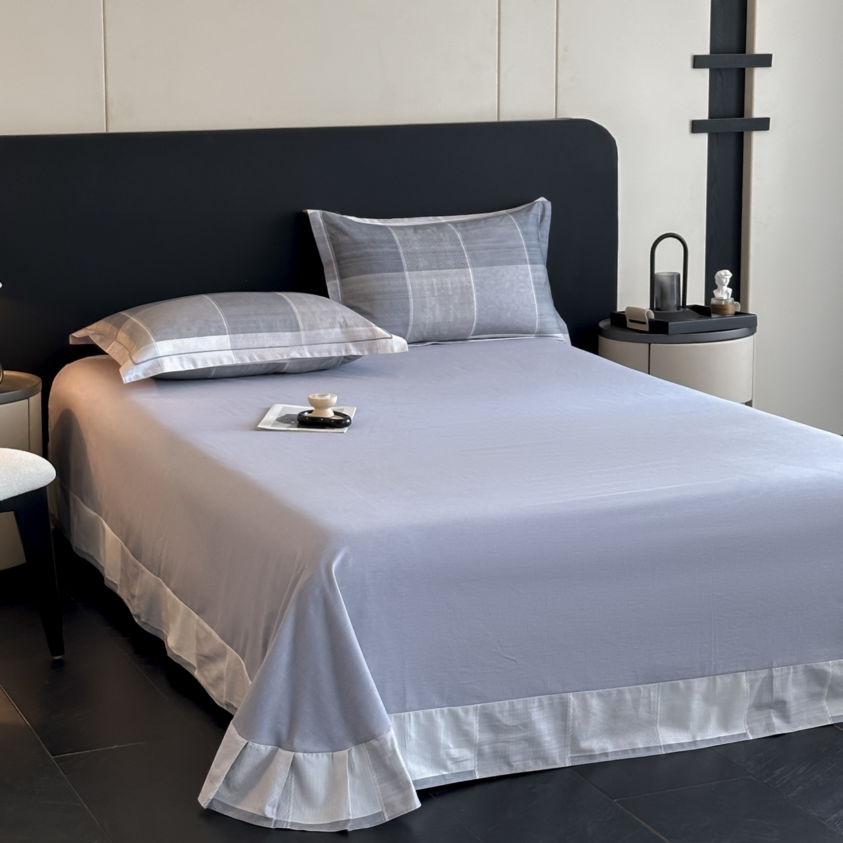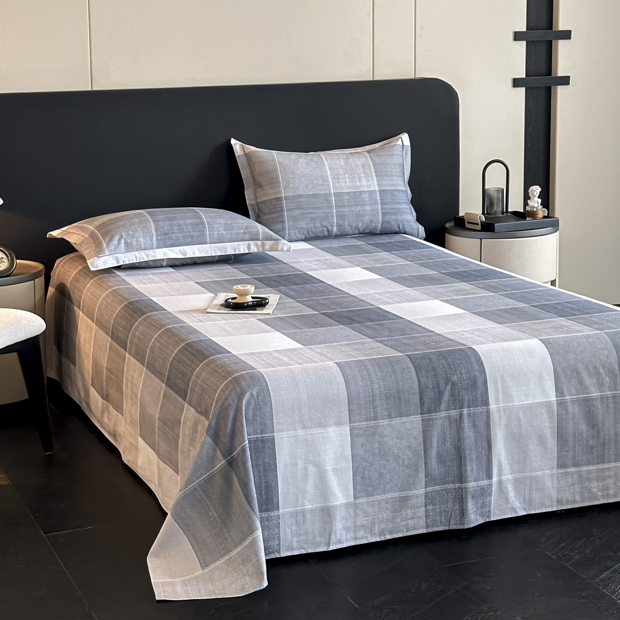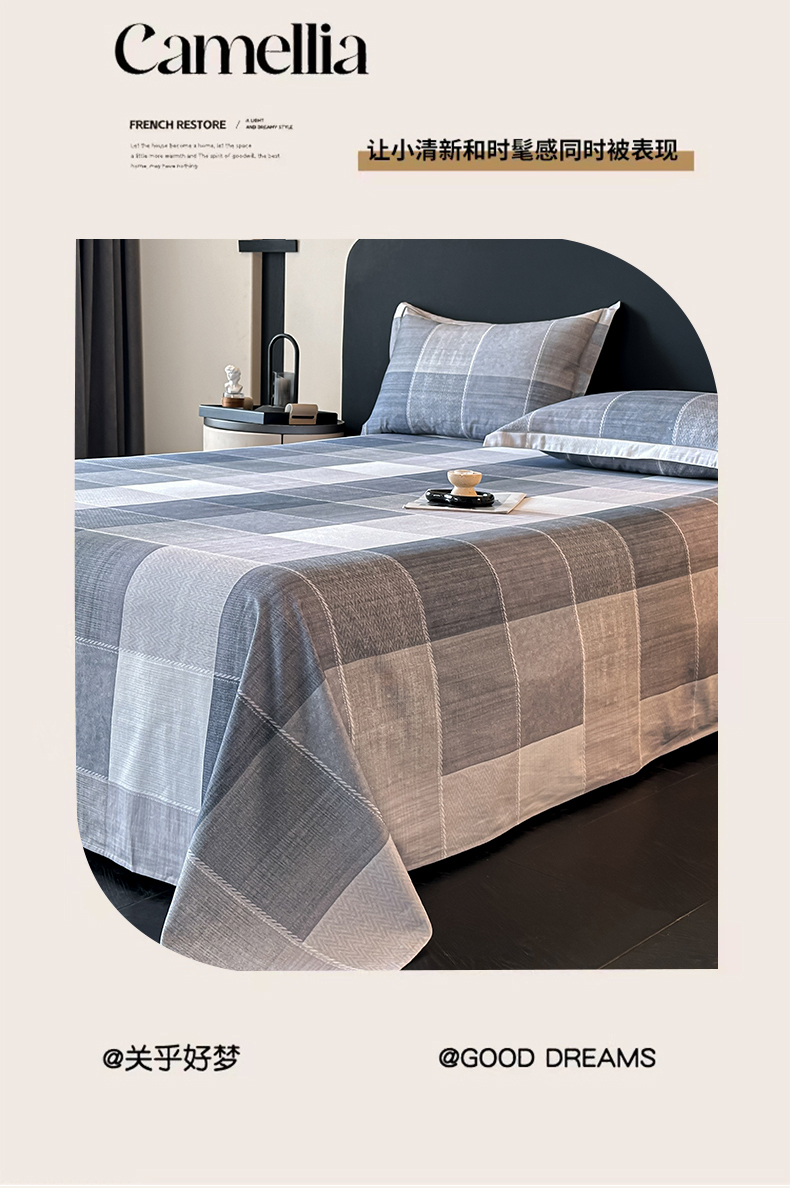 大柏树 2025新款亲肤舒适全棉纯棉磨单床单 床单单件 流年印记蓝