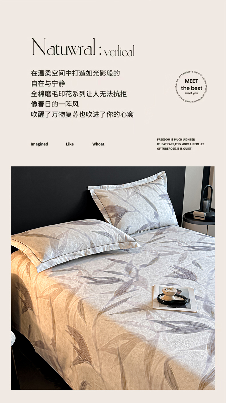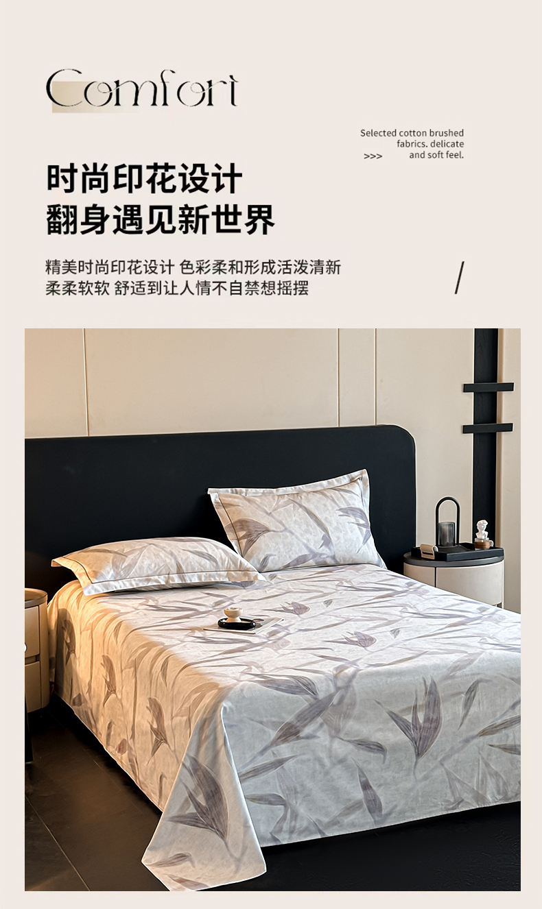 大柏树 2025新款亲肤舒适全棉纯棉磨单床单 床单单件 清风徐来兰