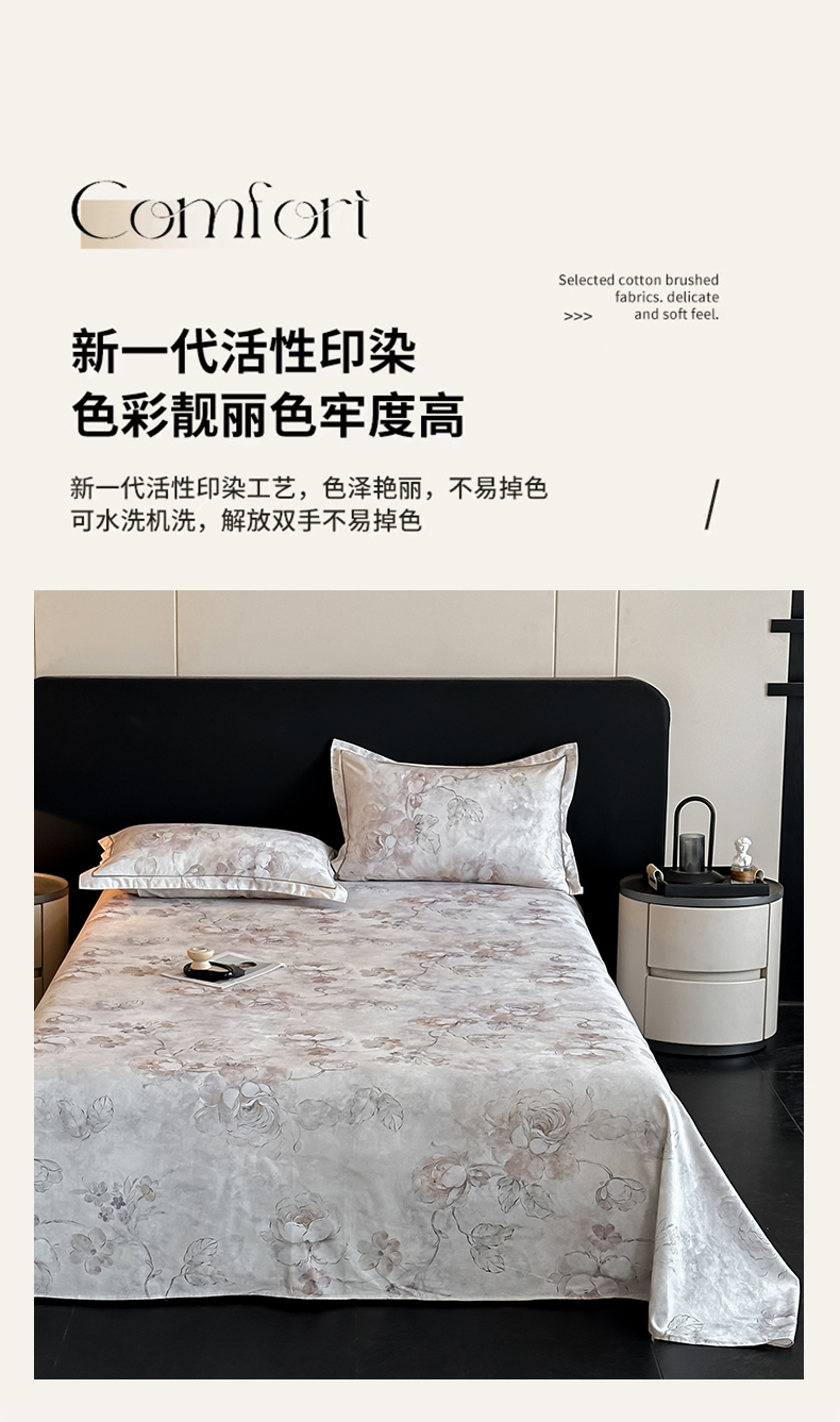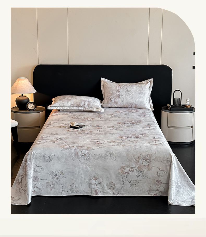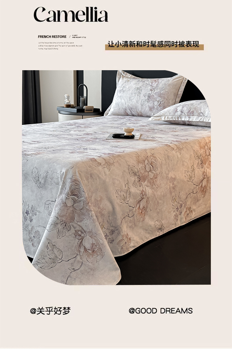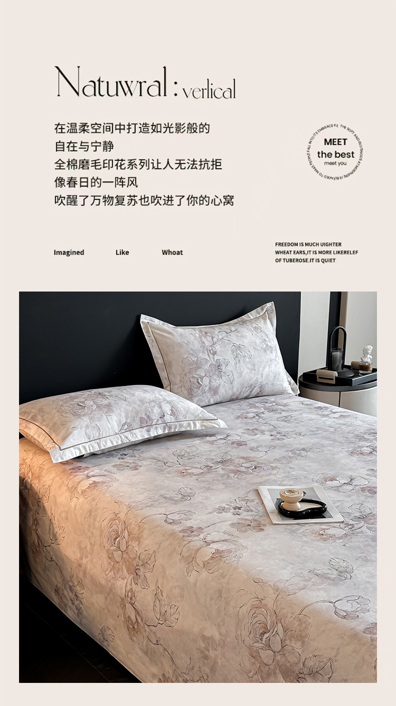 大柏树 2025新款亲肤舒适全棉纯棉磨单床单 床单单件 水墨清华亚麻