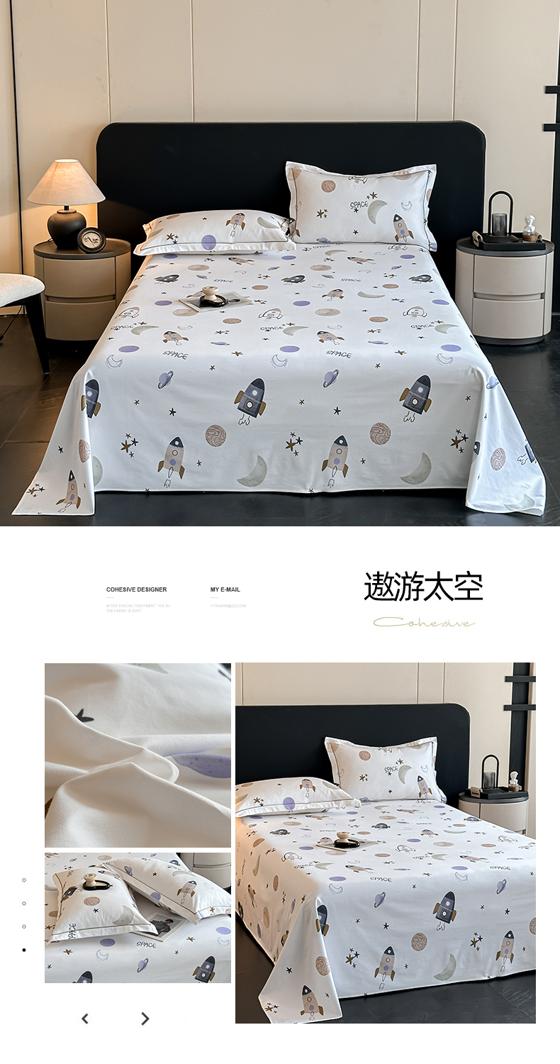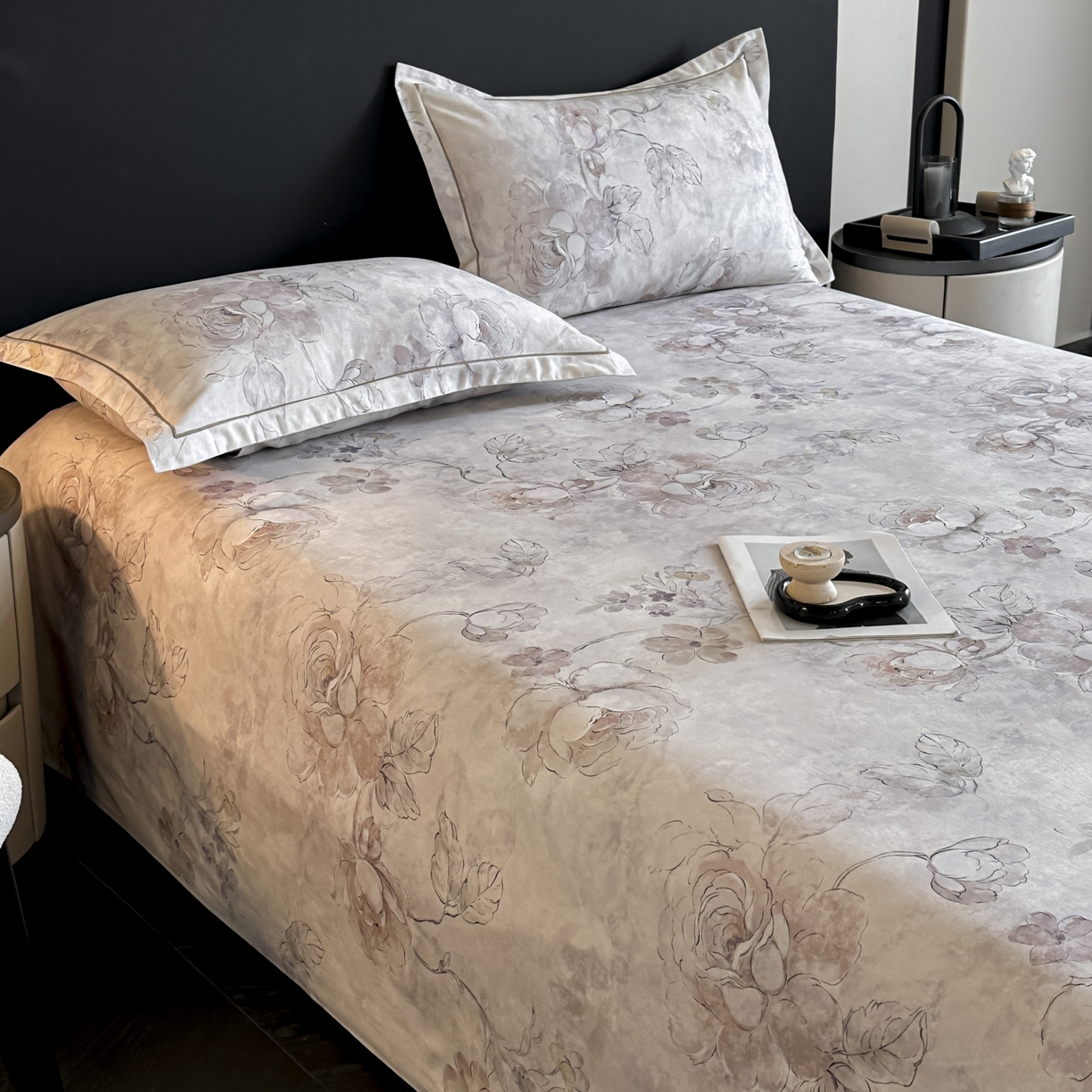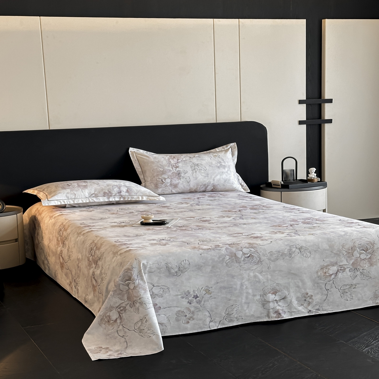 大柏树 2025新款亲肤舒适全棉纯棉磨单床单 床单单件 水墨清华亚麻