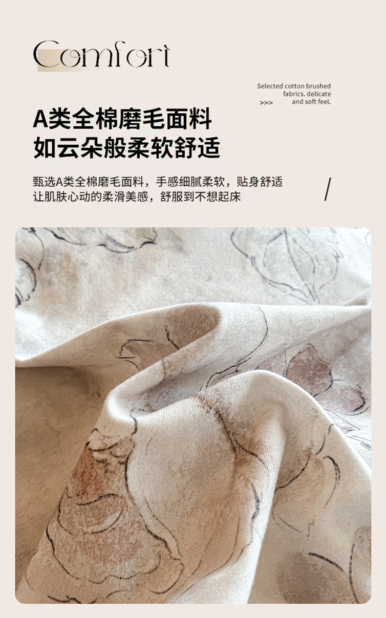 2024新款A类高克重亲肤舒适牛奶绒印花四件套