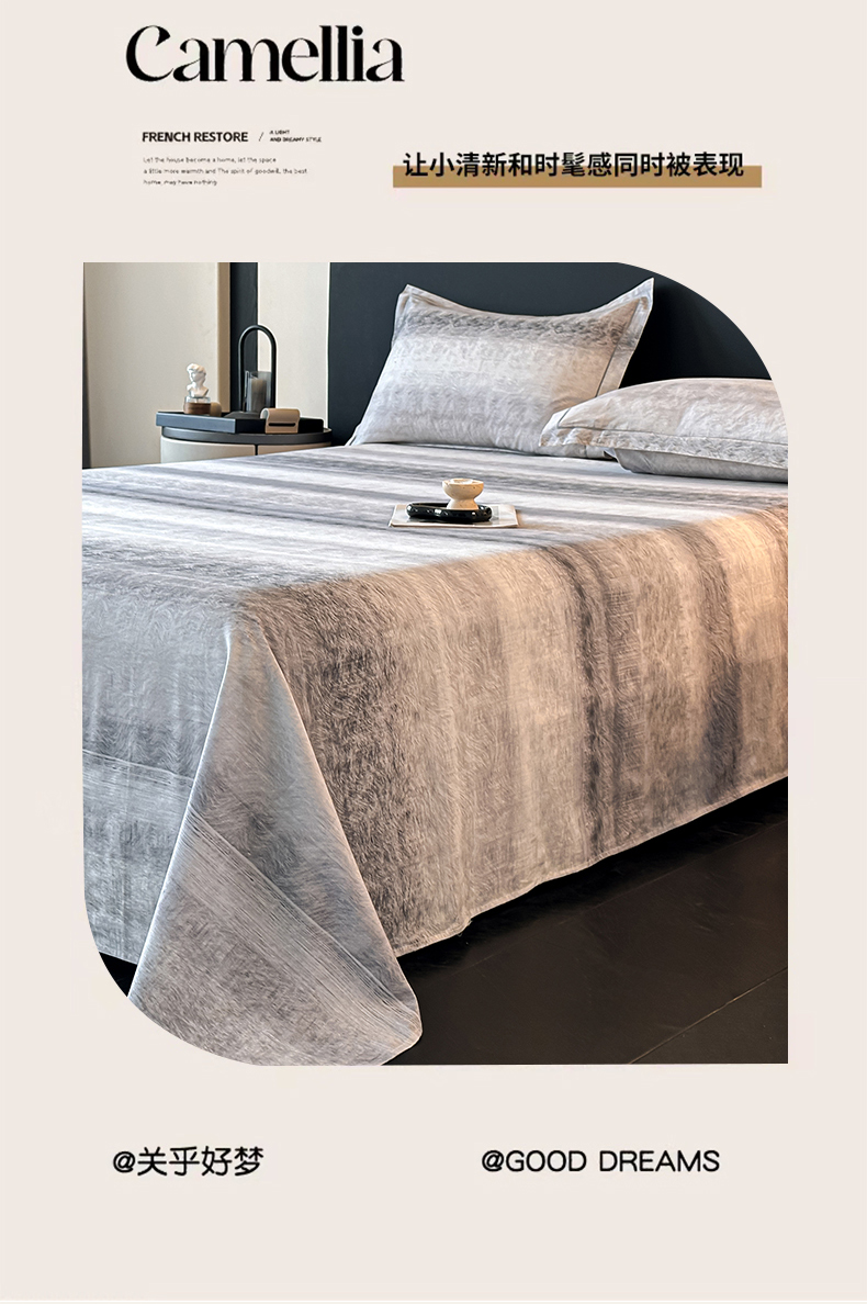 大柏树 2025新款亲肤舒适全棉纯棉磨单床单 床单单件 苏菲庄园灰
