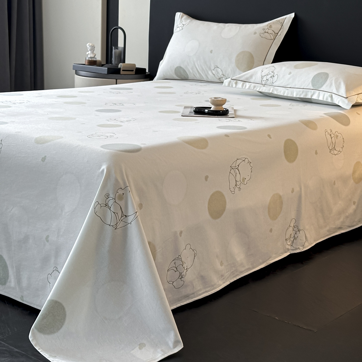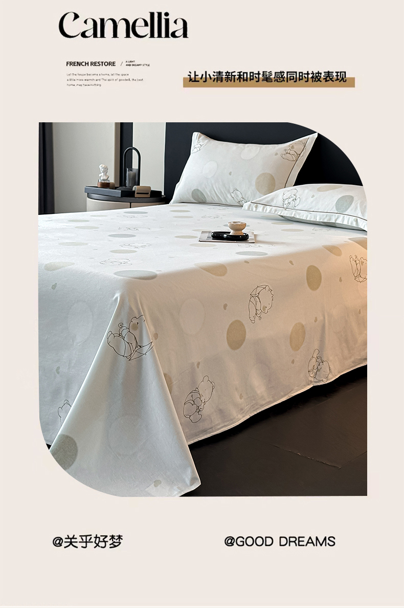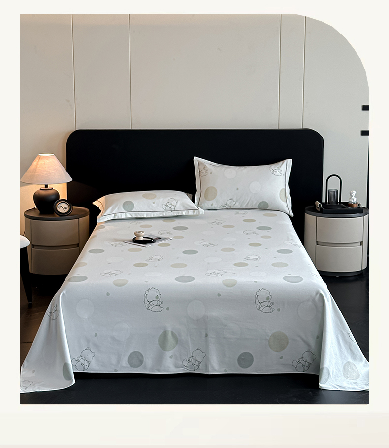 大柏树 2025新款亲肤舒适全棉纯棉磨单床单 床单单件 星空小熊绿