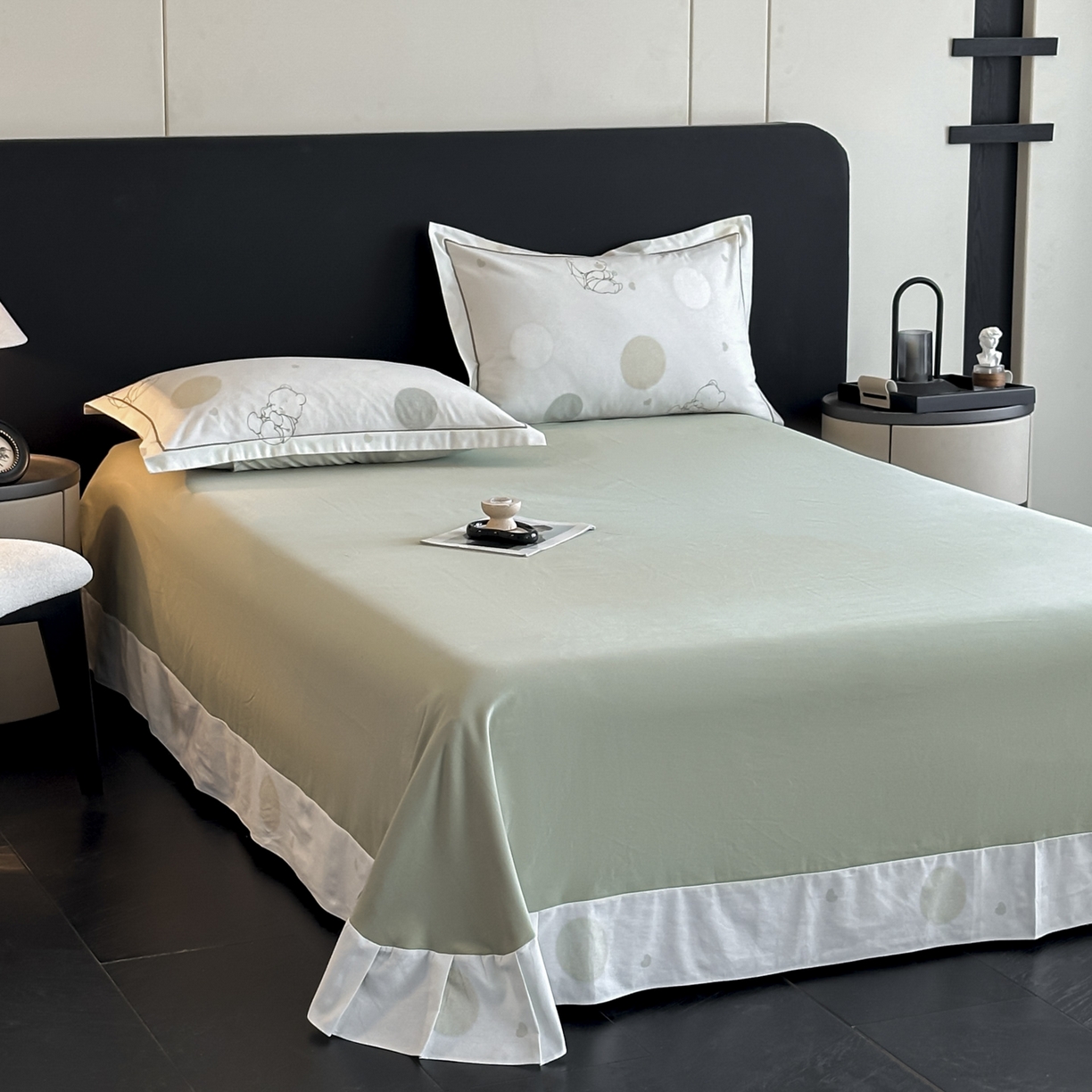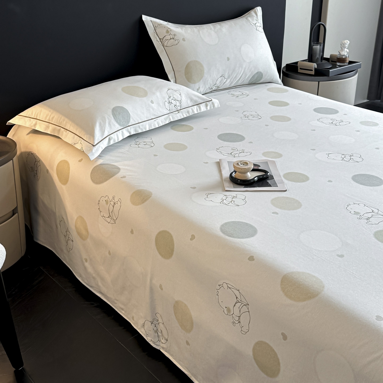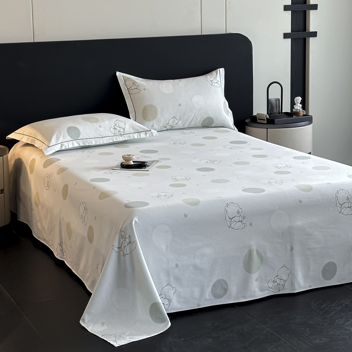 大柏树 2025新款亲肤舒适全棉纯棉磨单床单 床单单件 星空小熊绿