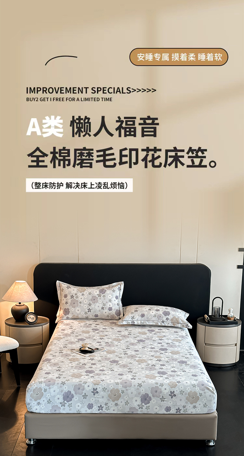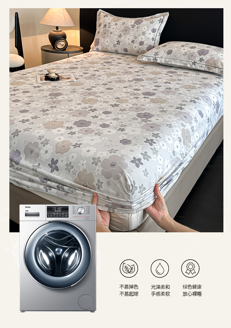 大柏树 2025新款亲肤舒适全棉纯棉磨单床笠 床笠单件 涧菓紫