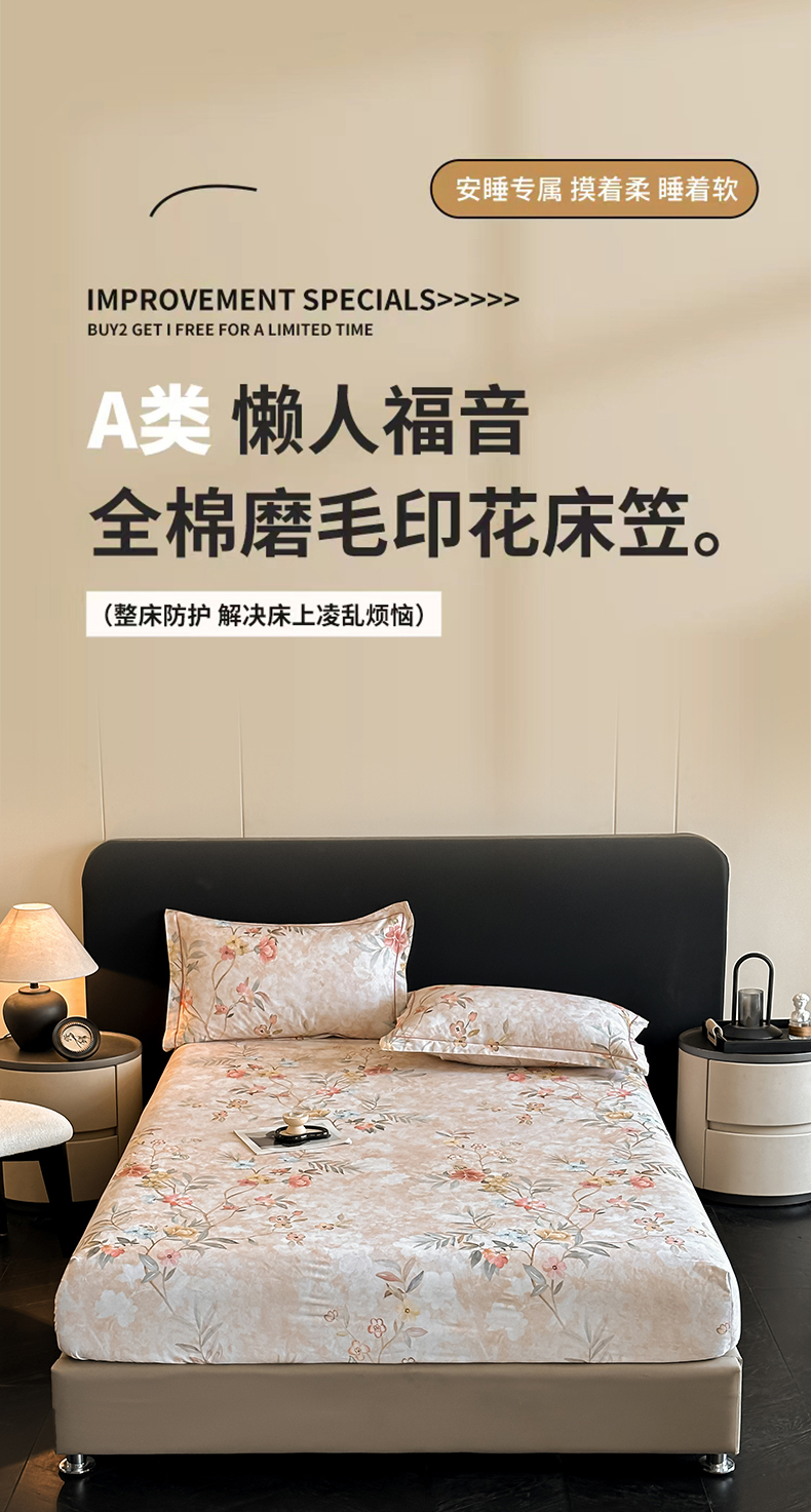 大柏树 2025新款亲肤舒适全棉纯棉磨单床笠 床笠单件 美伊咖