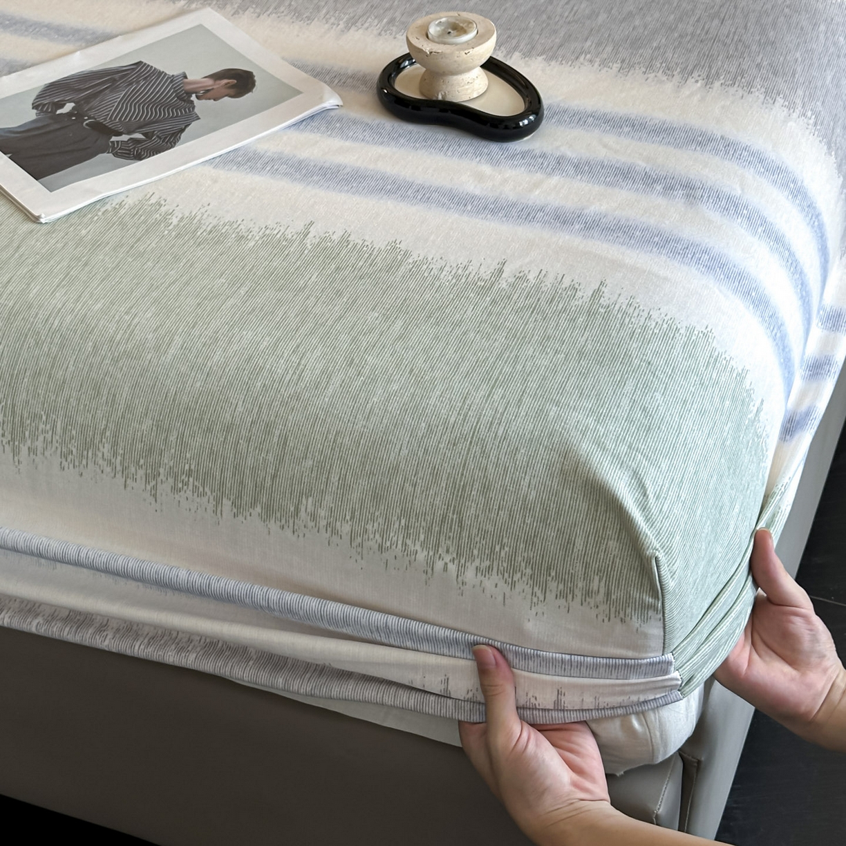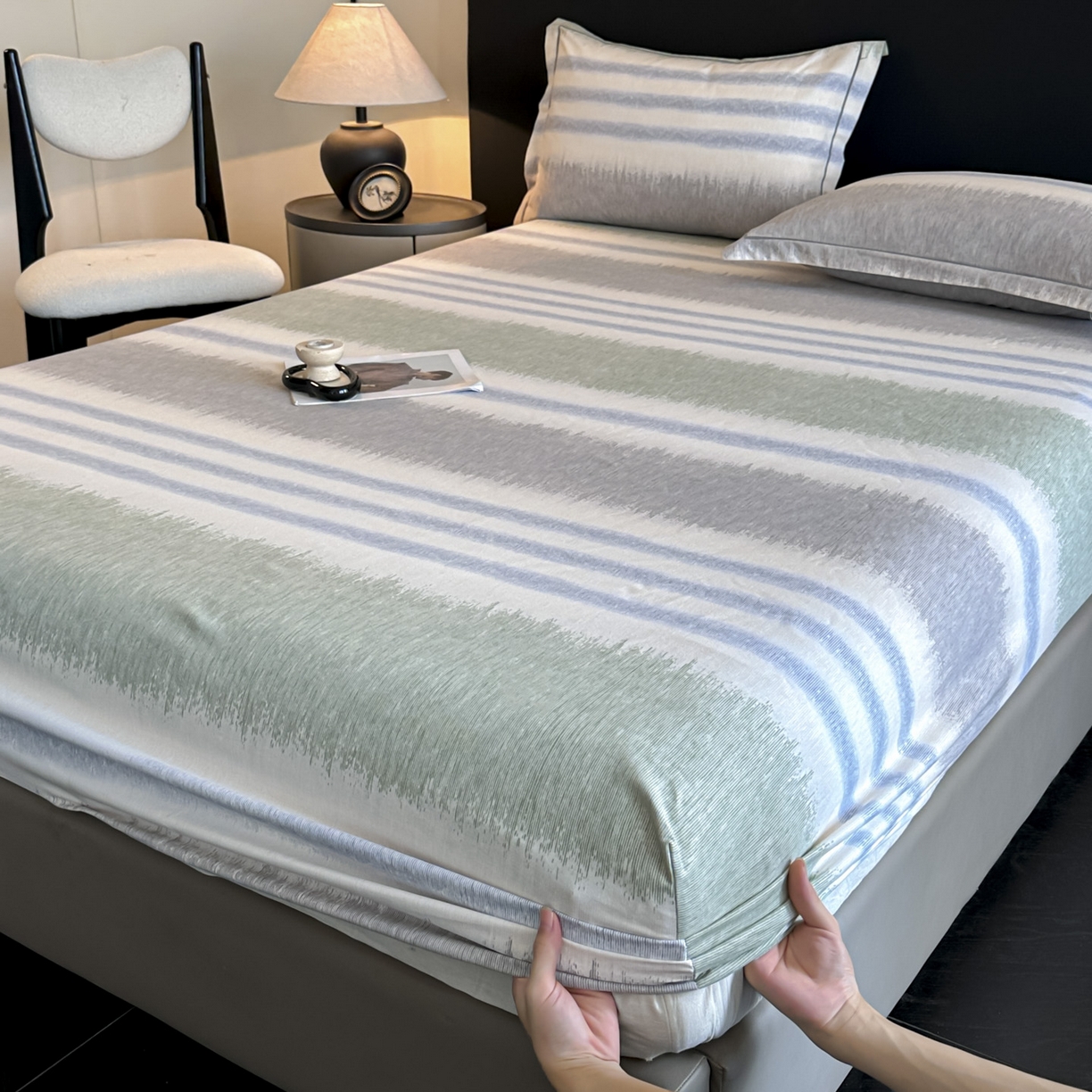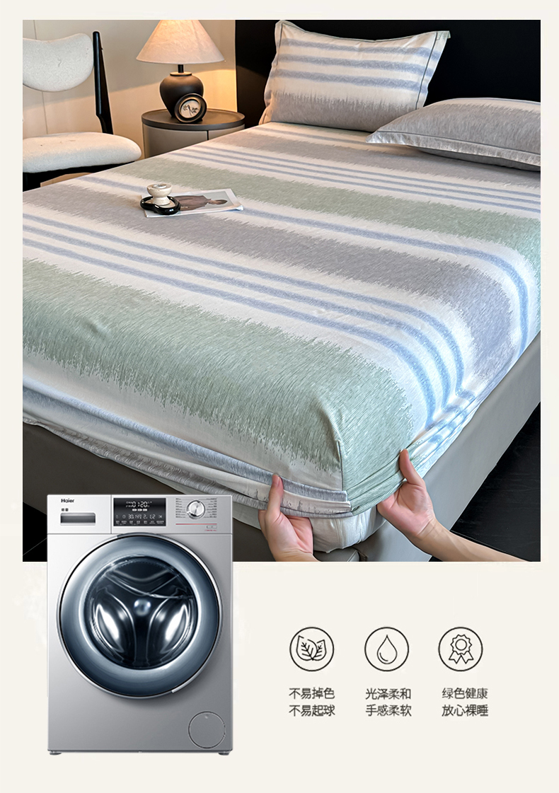 大柏树 2025新款亲肤舒适全棉纯棉磨单床笠 床笠单件 暖调绿