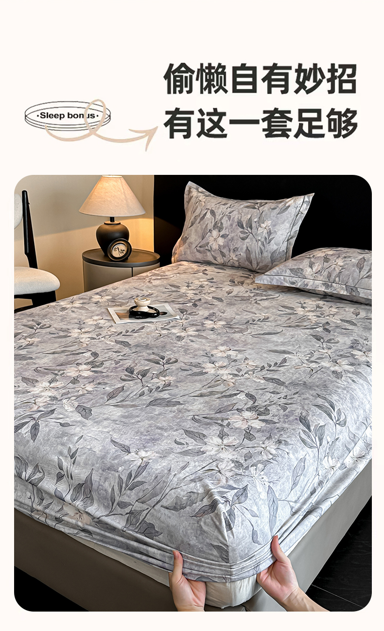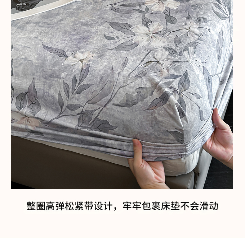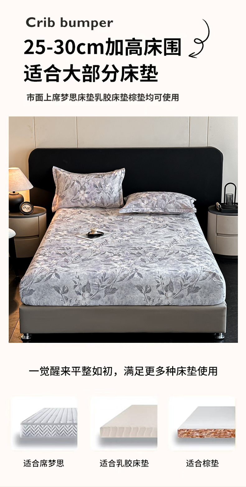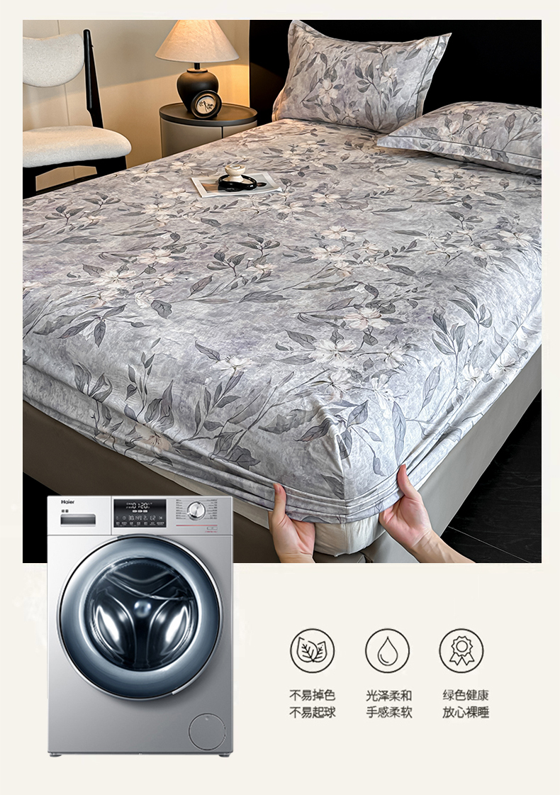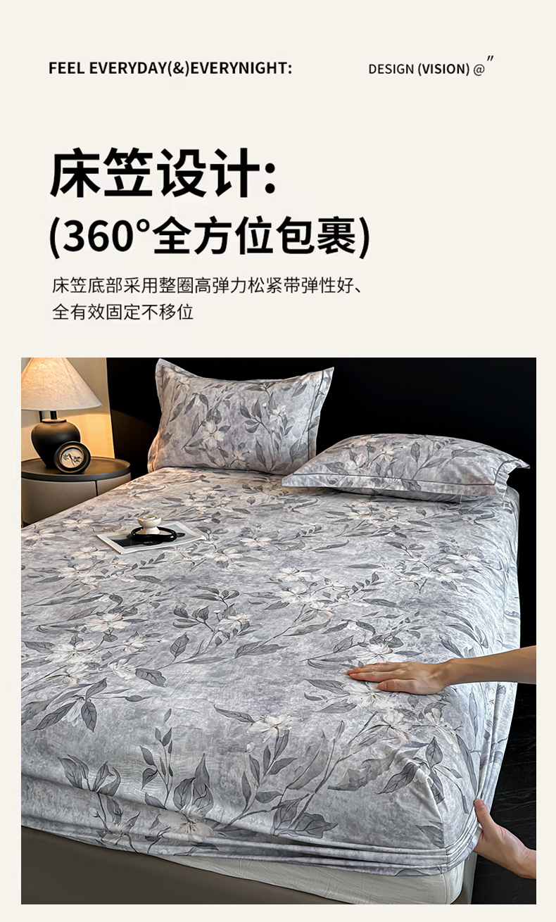 大柏树 2025新款亲肤舒适全棉纯棉磨单床笠 床笠单件 琼枝灰