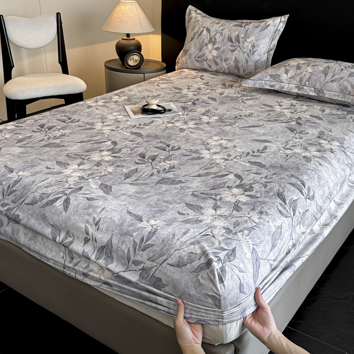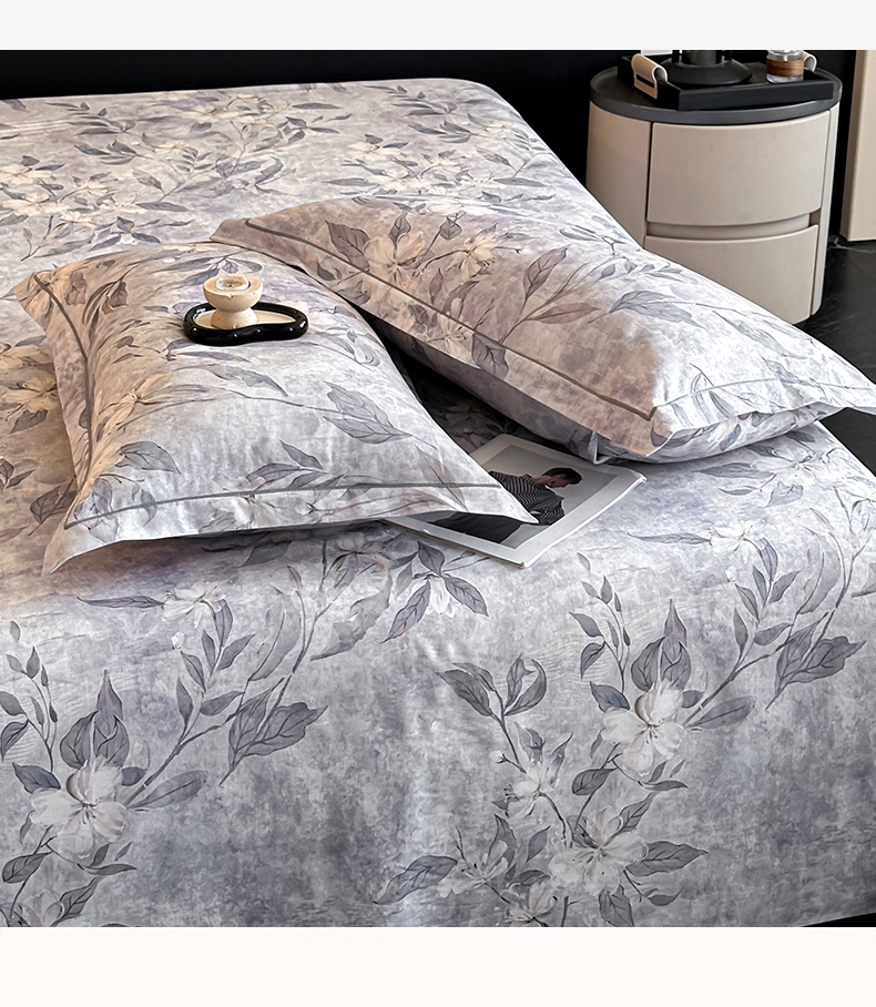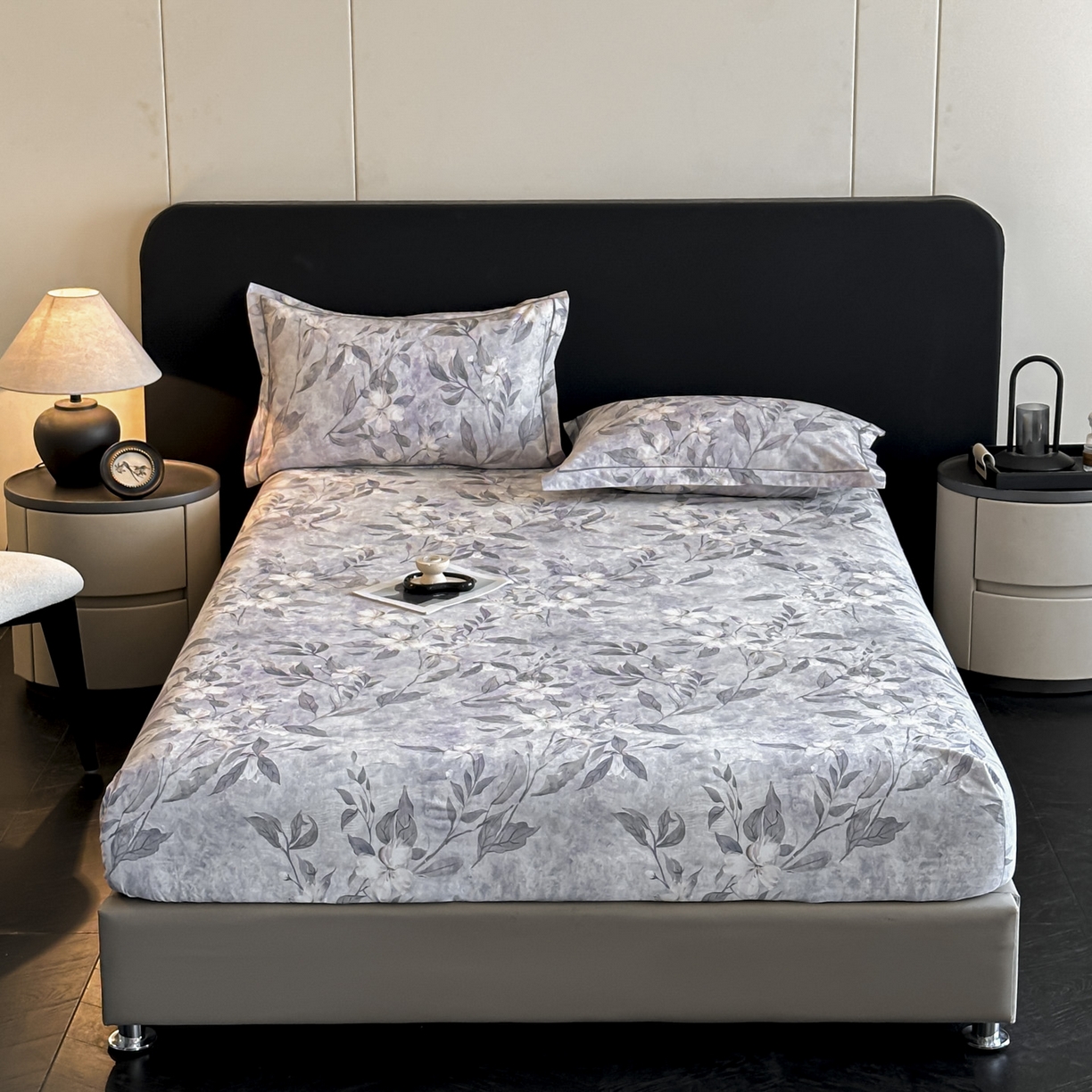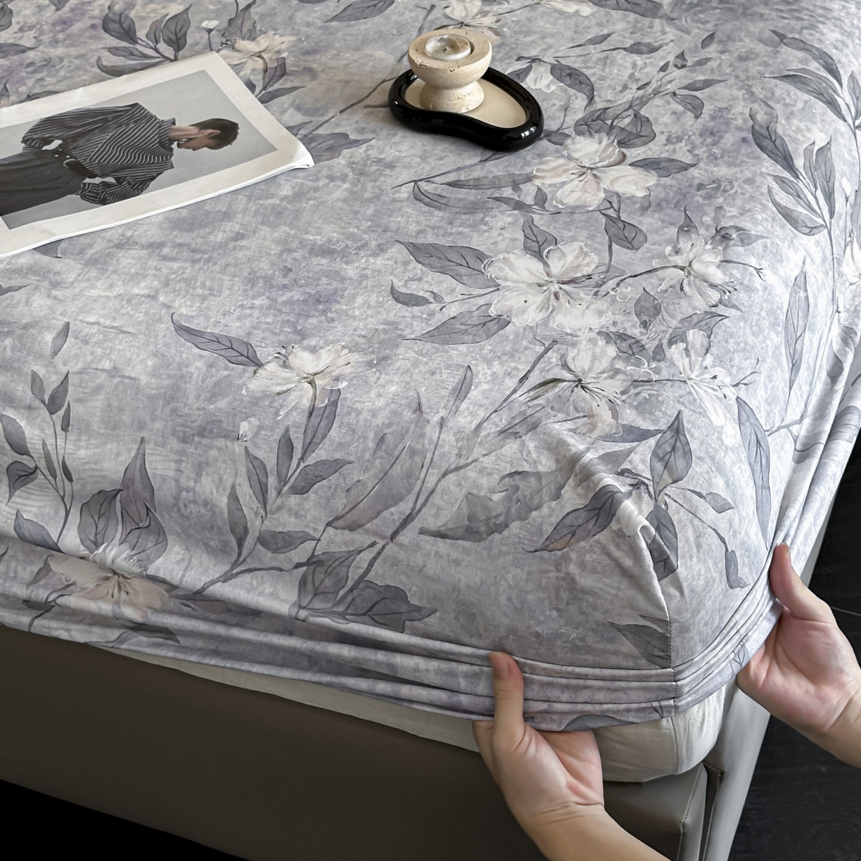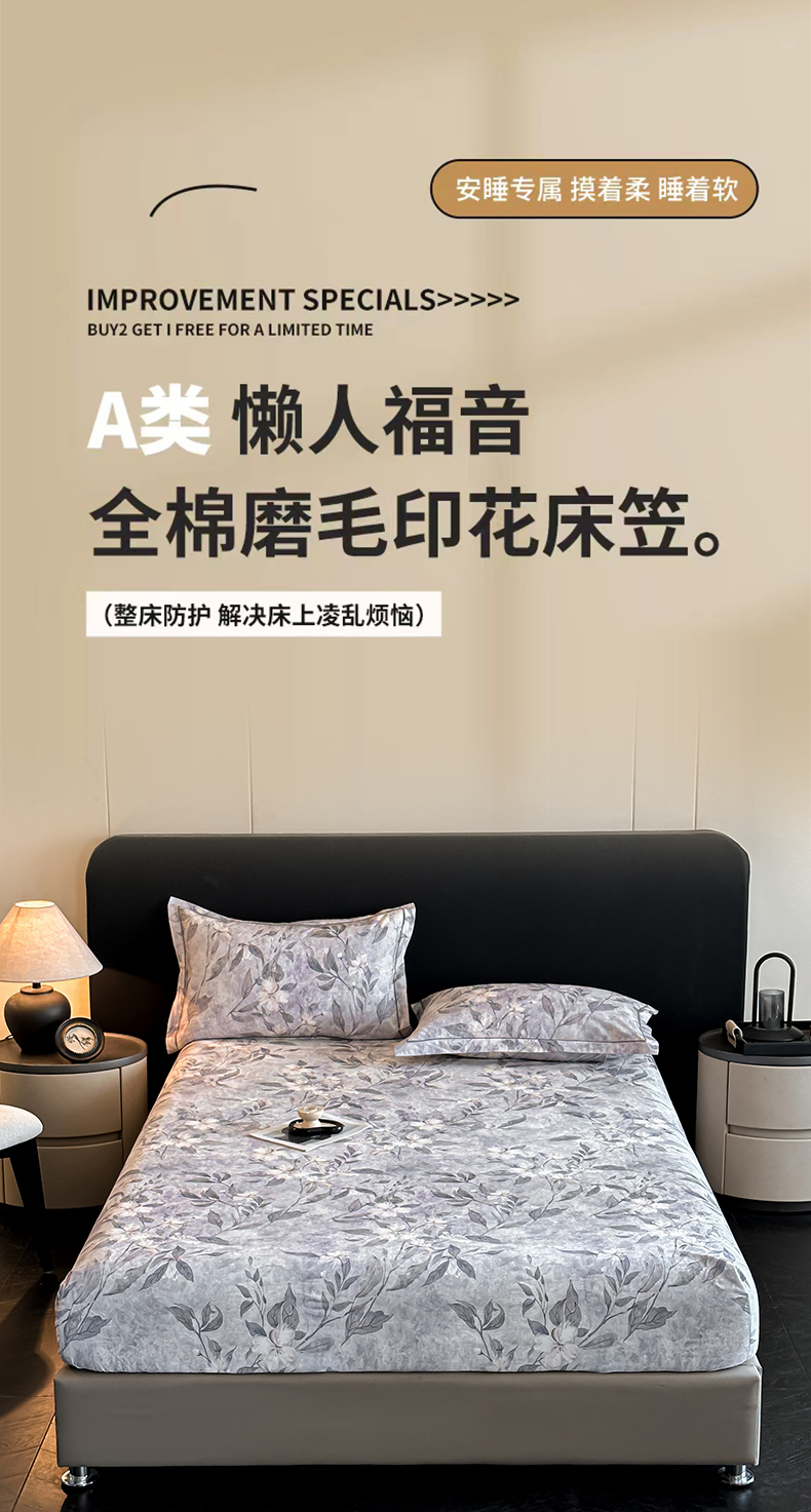 大柏树 2025新款亲肤舒适全棉纯棉磨单床笠 床笠单件 琼枝灰