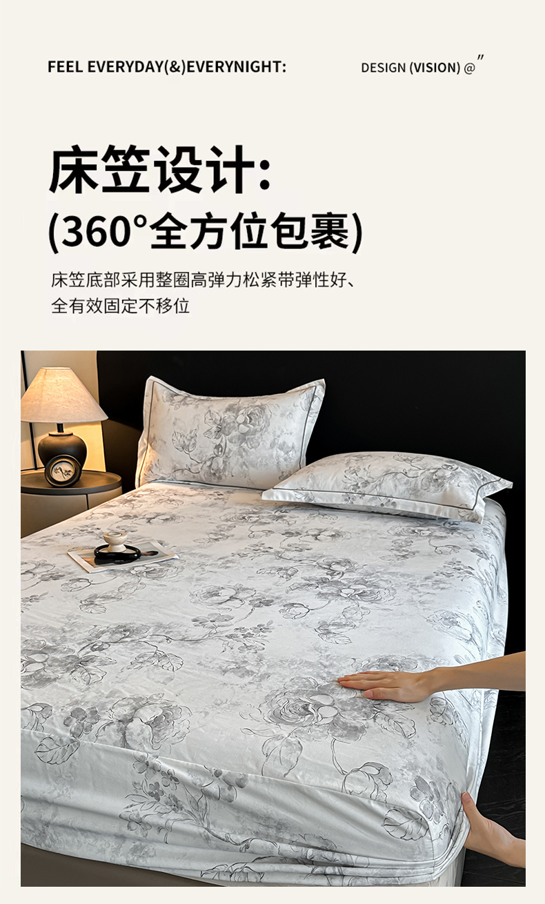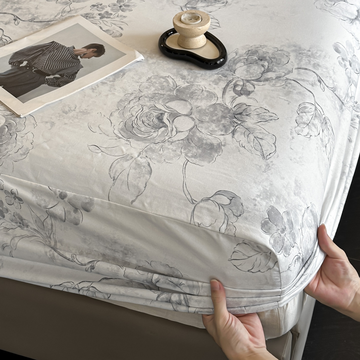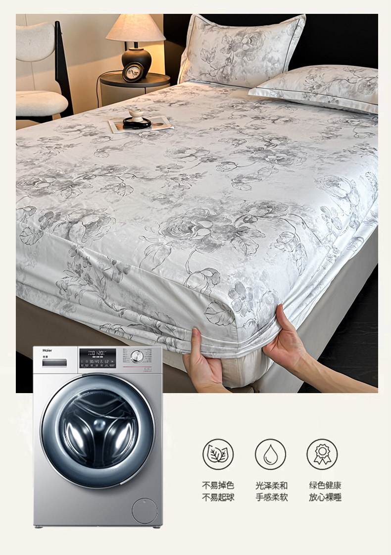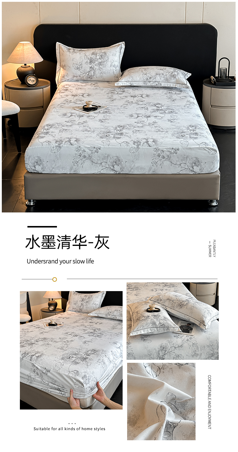 大柏树 2025新款亲肤舒适全棉纯棉磨单床笠 床笠单件 水墨清华灰