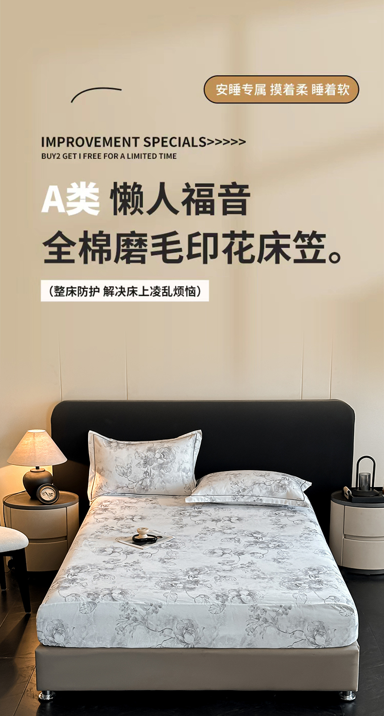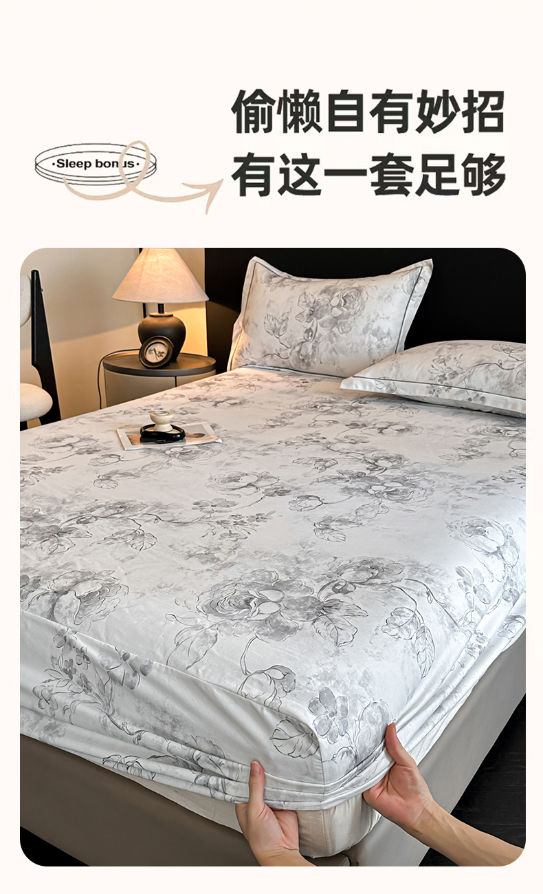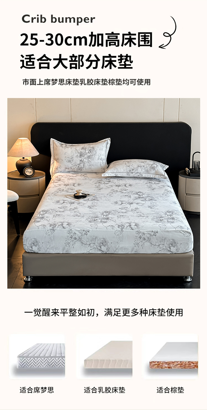 大柏树 2025新款亲肤舒适全棉纯棉磨单床笠 床笠单件 水墨清华灰