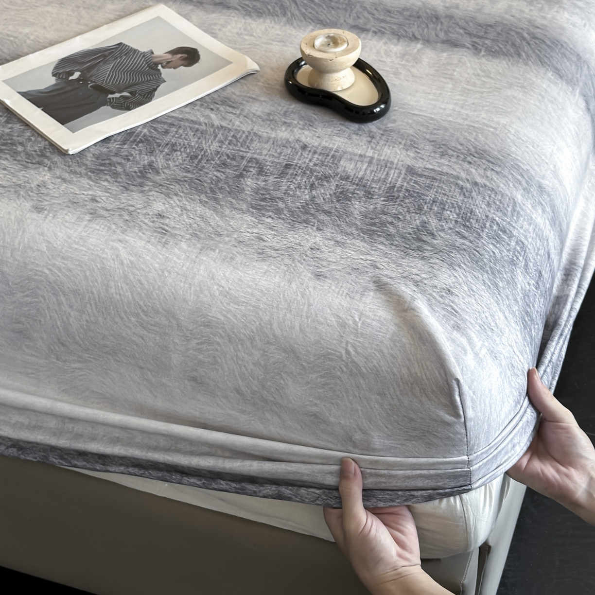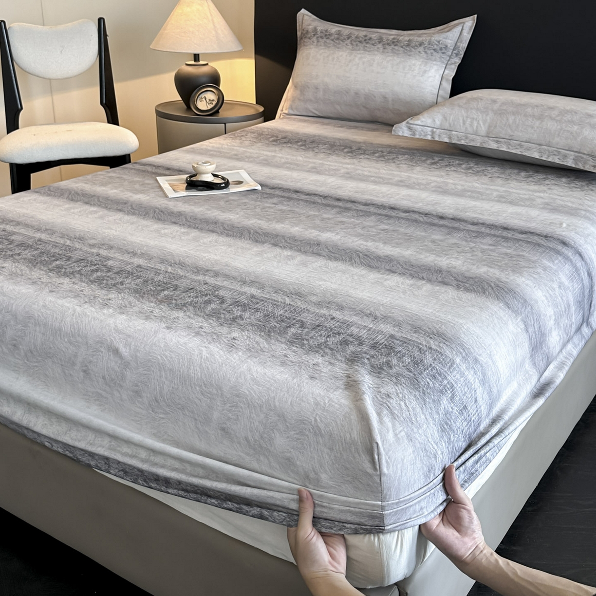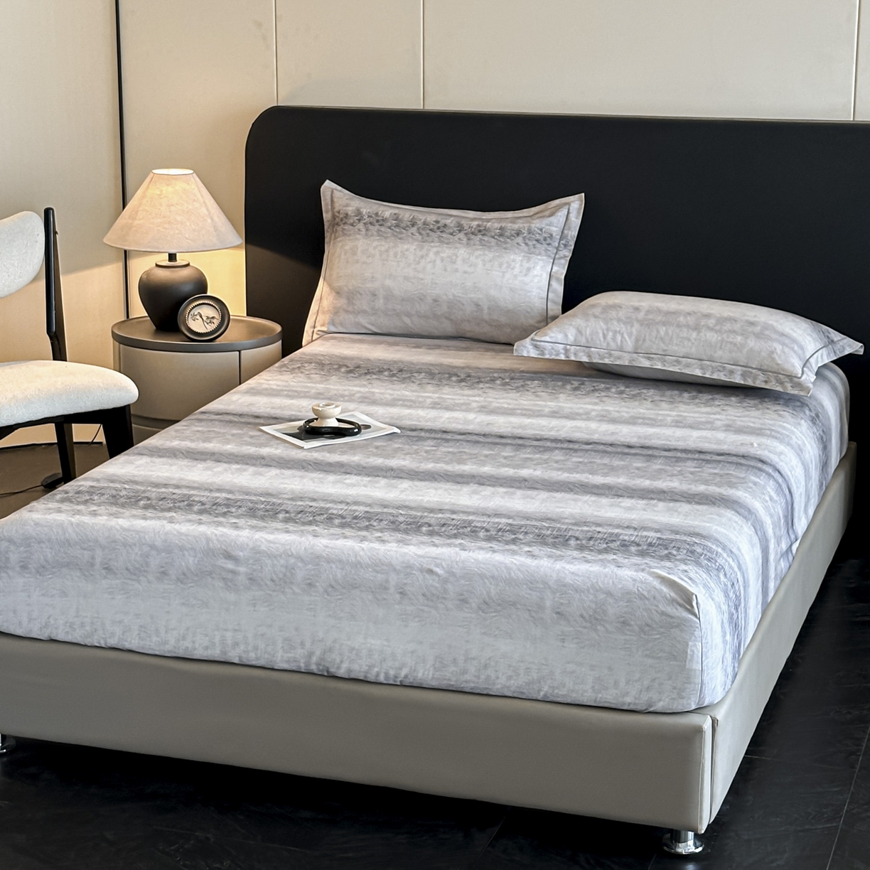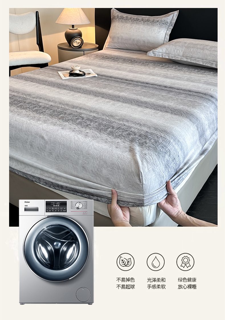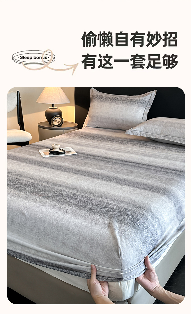 大柏树 2025新款亲肤舒适全棉纯棉磨单床笠 床笠单件 苏菲庄园灰
