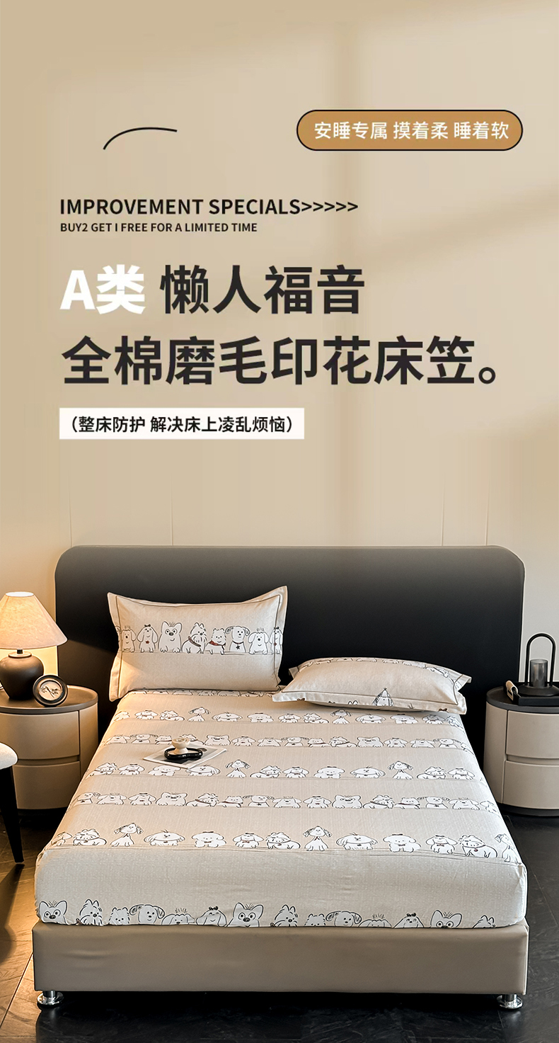 大柏树 2025新款亲肤舒适全棉纯棉磨单床笠 床笠单件 小奥汀咖
