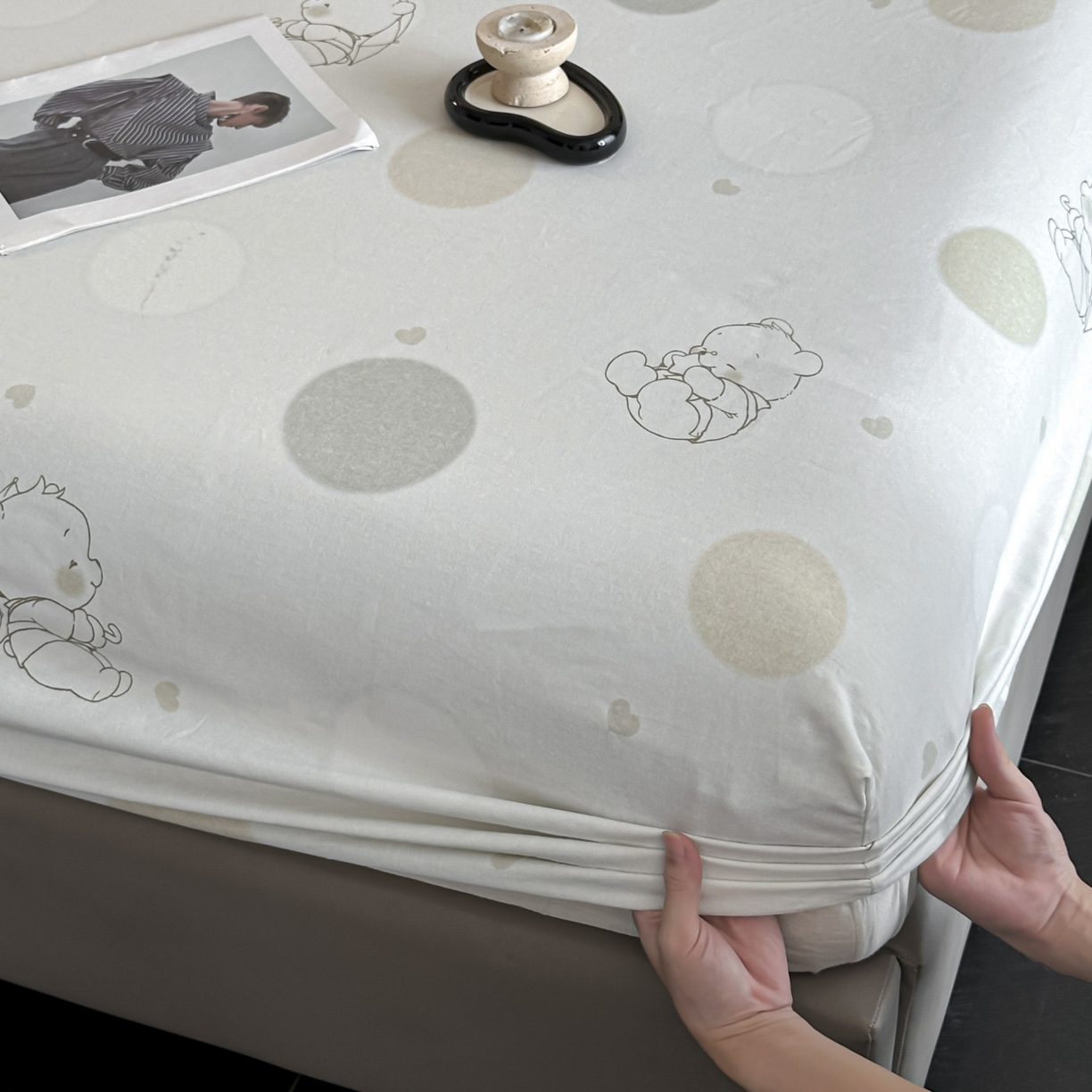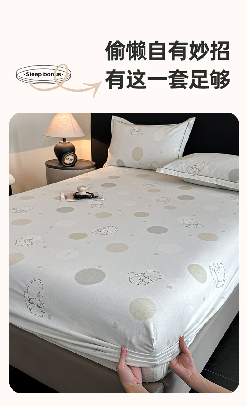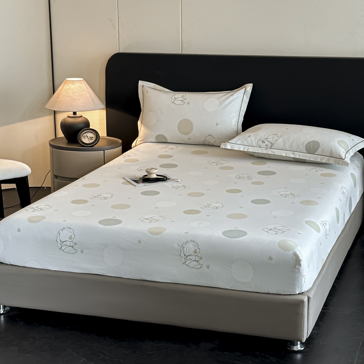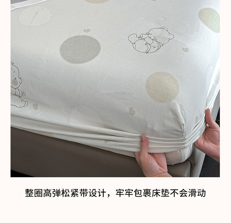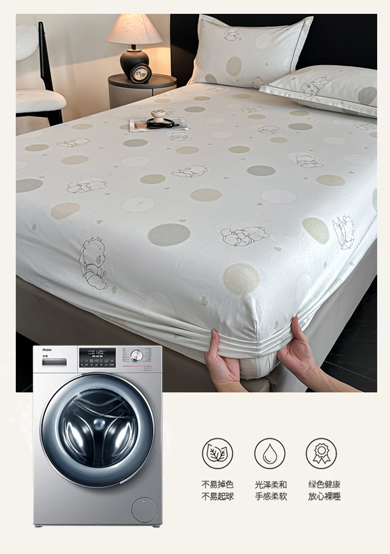 大柏树 2025新款亲肤舒适全棉纯棉磨单床笠 床笠单件 星空小熊绿