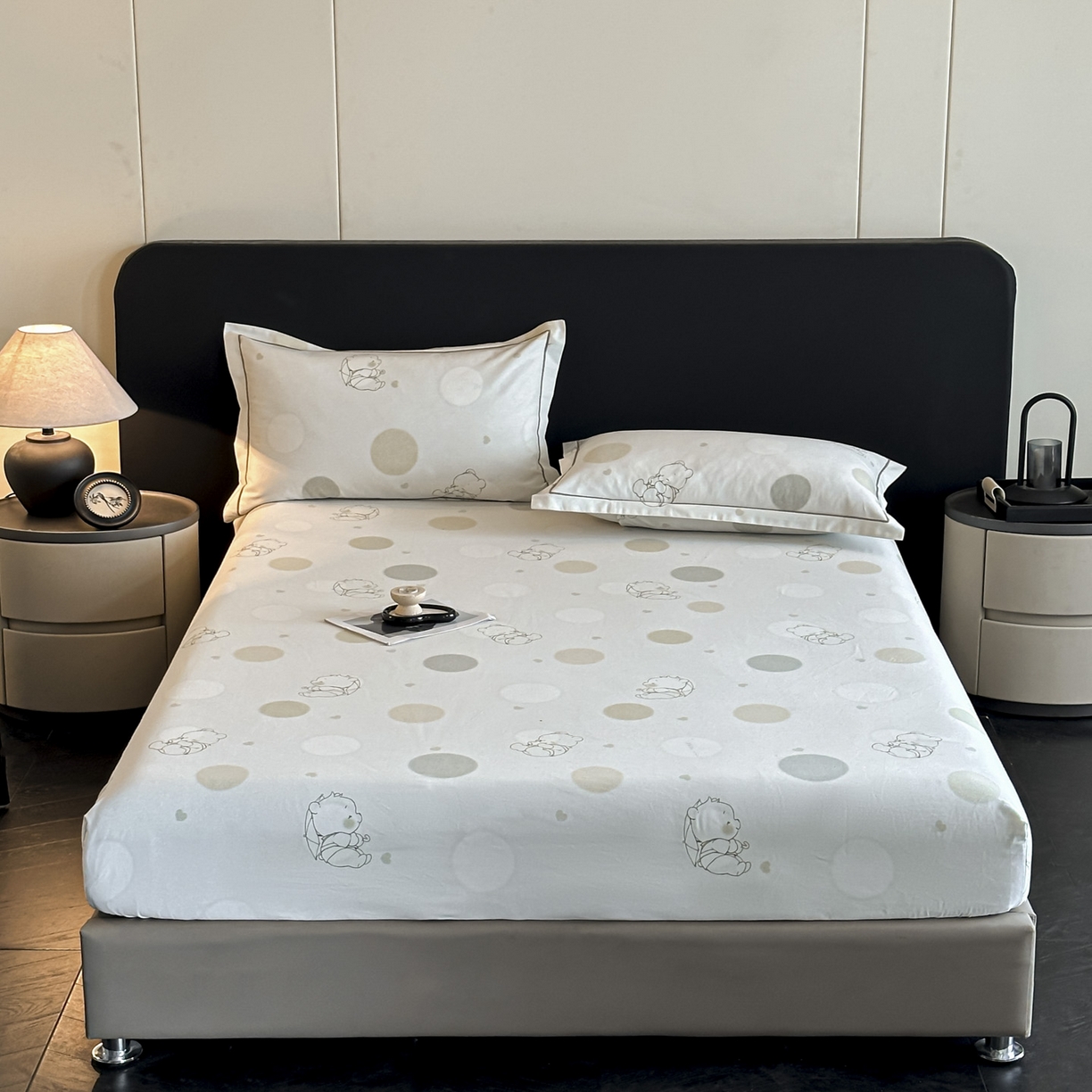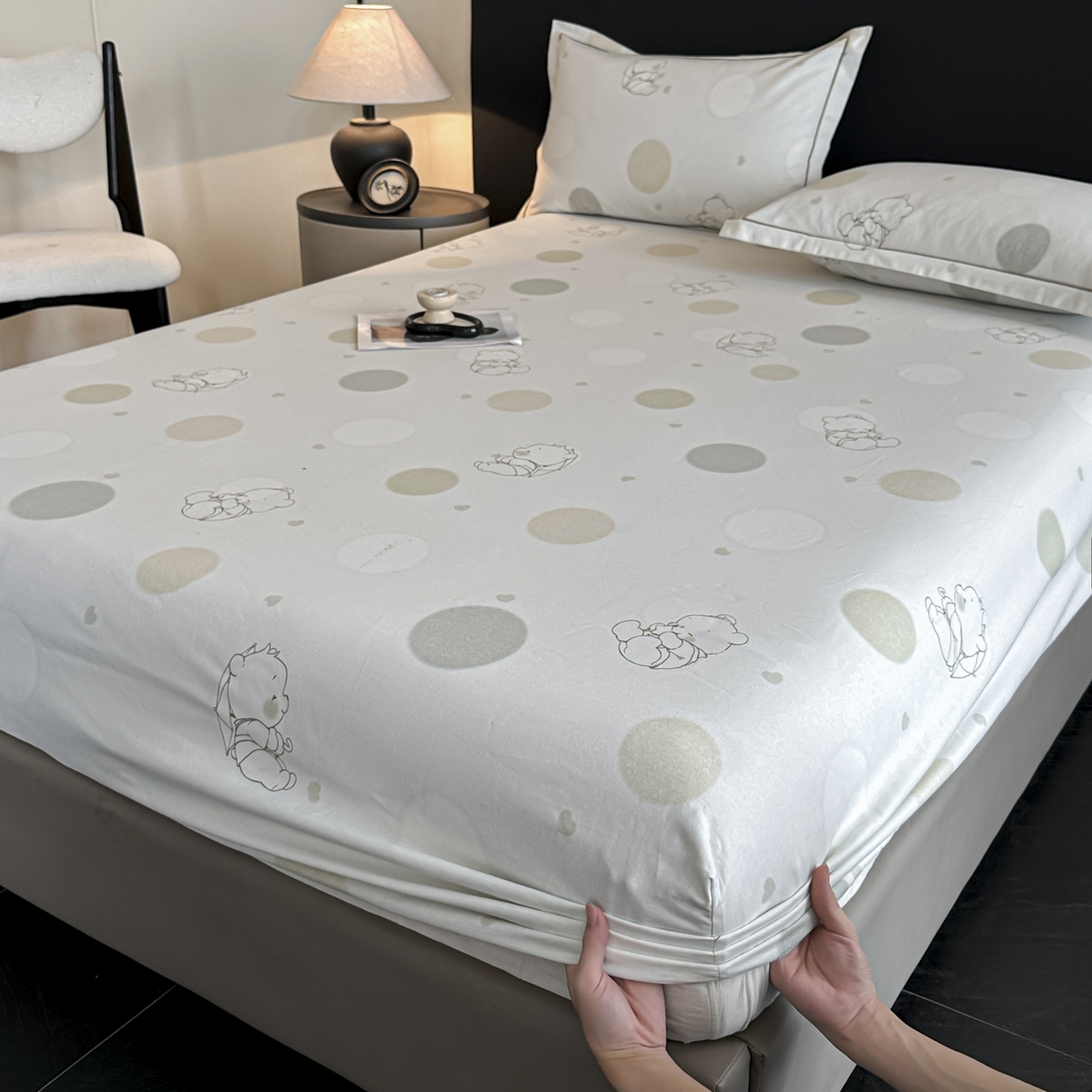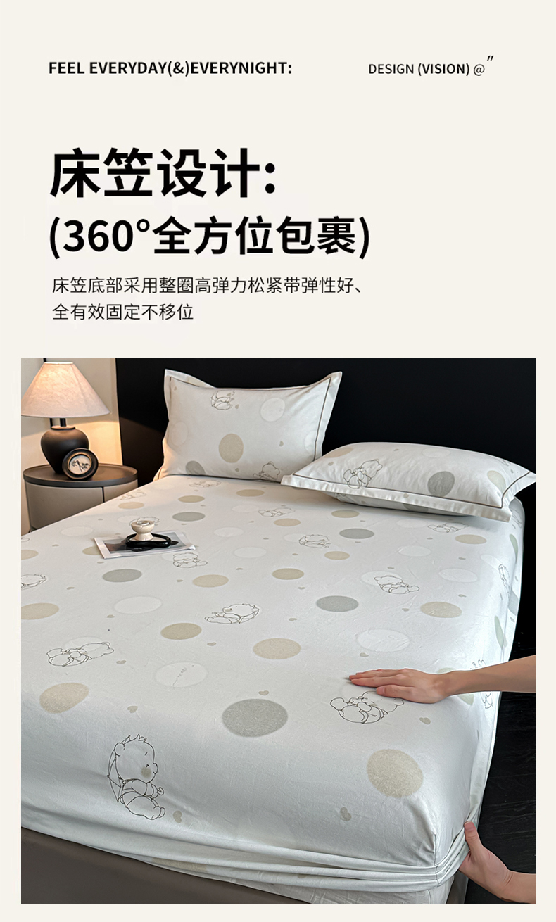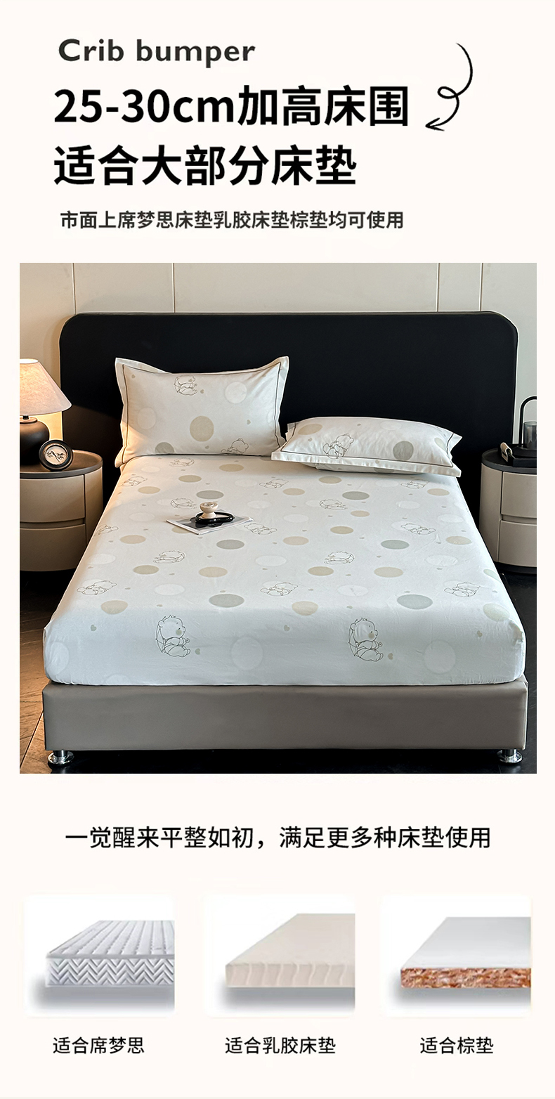 大柏树 2025新款亲肤舒适全棉纯棉磨单床笠 床笠单件 星空小熊绿