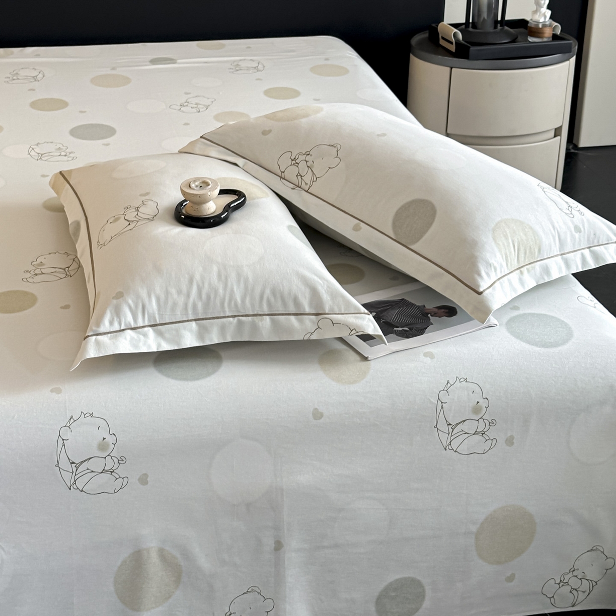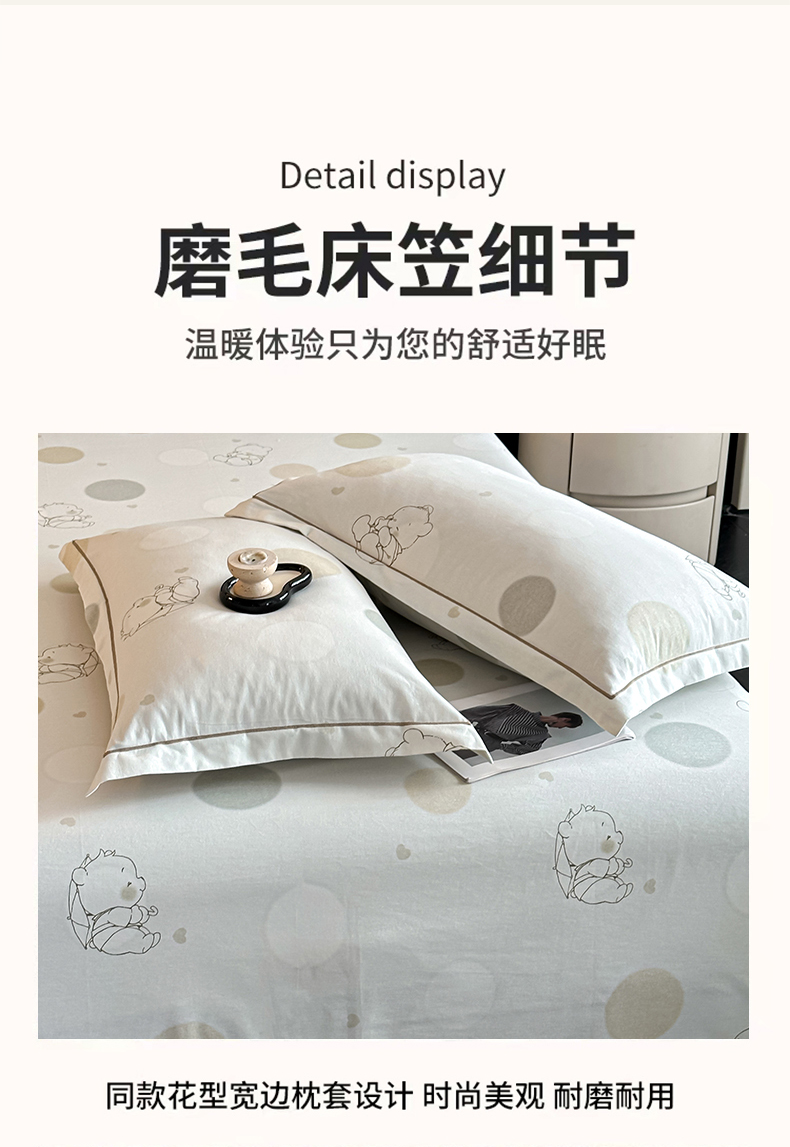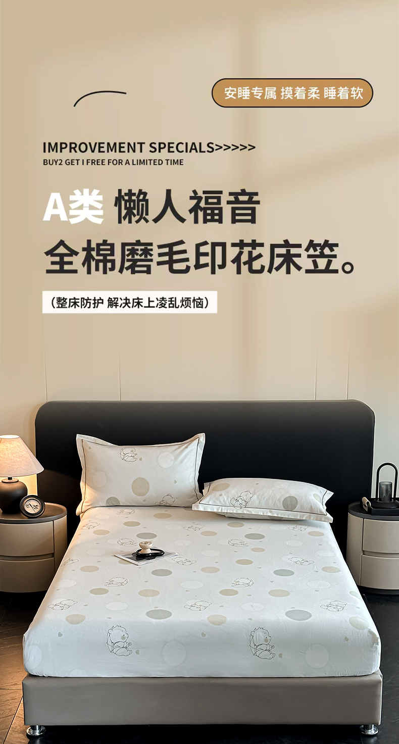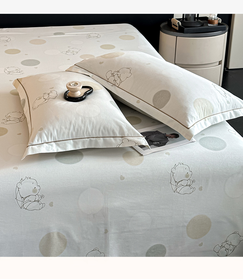 大柏树 2025新款亲肤舒适全棉纯棉磨单床笠 床笠单件 星空小熊绿