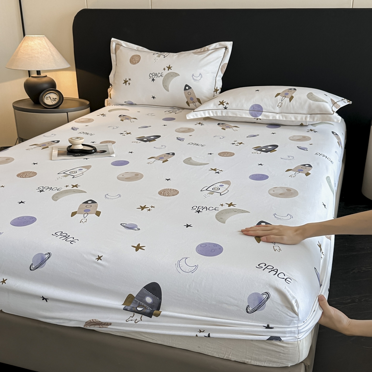 大柏树 2025新款亲肤舒适全棉纯棉磨单床笠 床笠单件 星空小熊绿
