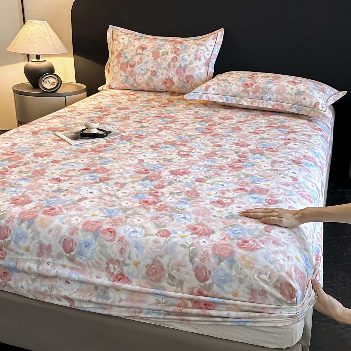 大柏树 2025新款亲肤舒适全棉纯棉磨单床笠 床笠单件 闻花语米
